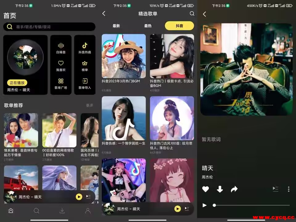 【软件介绍】:汇聚大量高质量音乐资源,免费听歌,类型齐全,一键查看每天音乐榜单,发现更多好听的音乐,为用户带来更畅快的听歌体验!